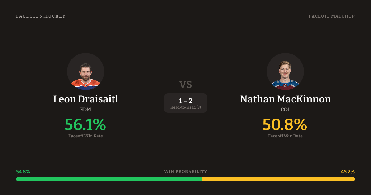 Leon Draisaitl vs Nathan MacKinnon — Faceoff Head-to-Head