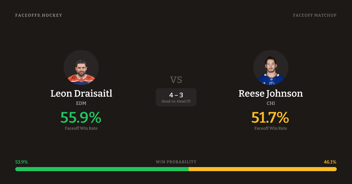 Leon Draisaitl vs Reese Johnson — Faceoff Head-to-Head