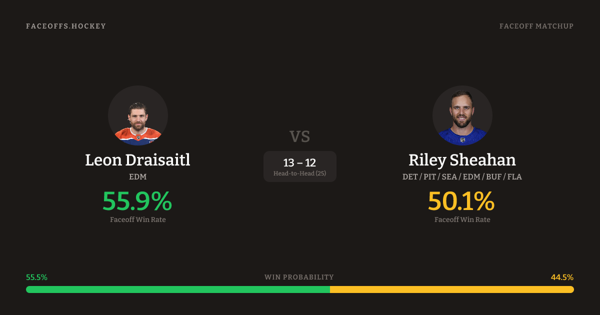 Leon Draisaitl vs Riley Sheahan — Faceoff Head-to-Head