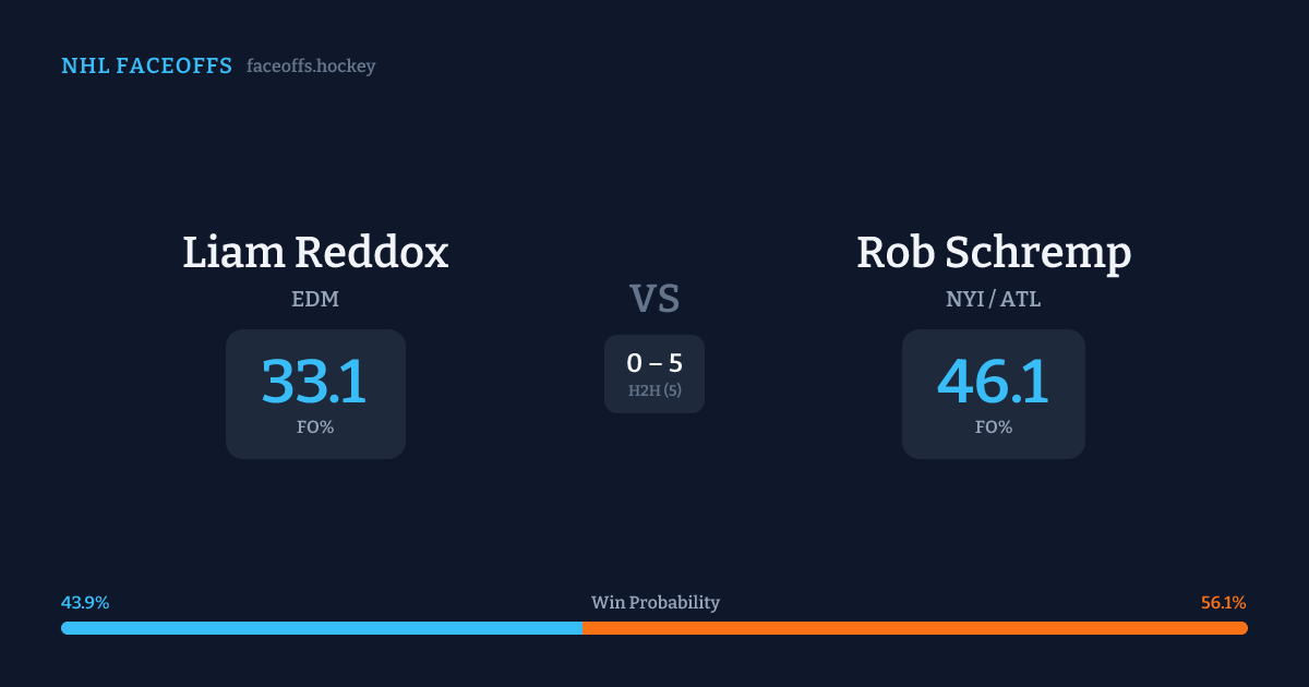 Liam Reddox vs Rob Schremp — Faceoff Head-to-Head