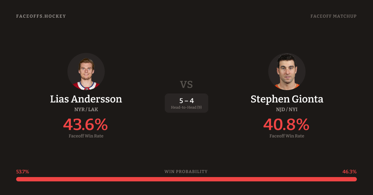 Lias Andersson vs Stephen Gionta — Faceoff Head-to-Head