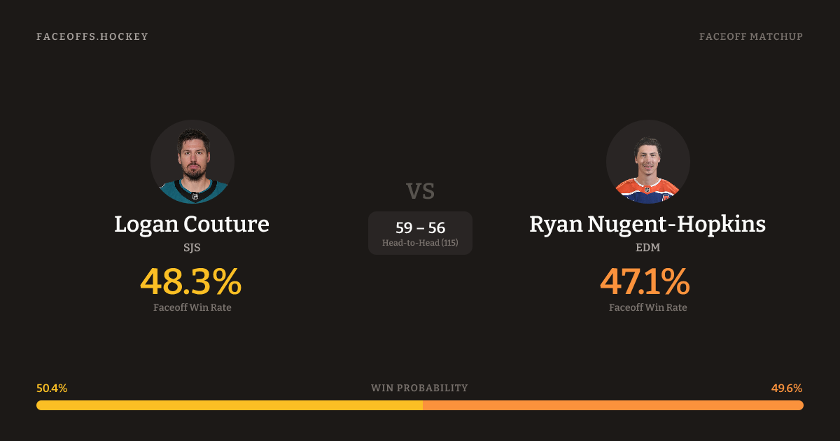 Logan Couture vs Ryan Nugent-Hopkins — Faceoff Head-to-Head