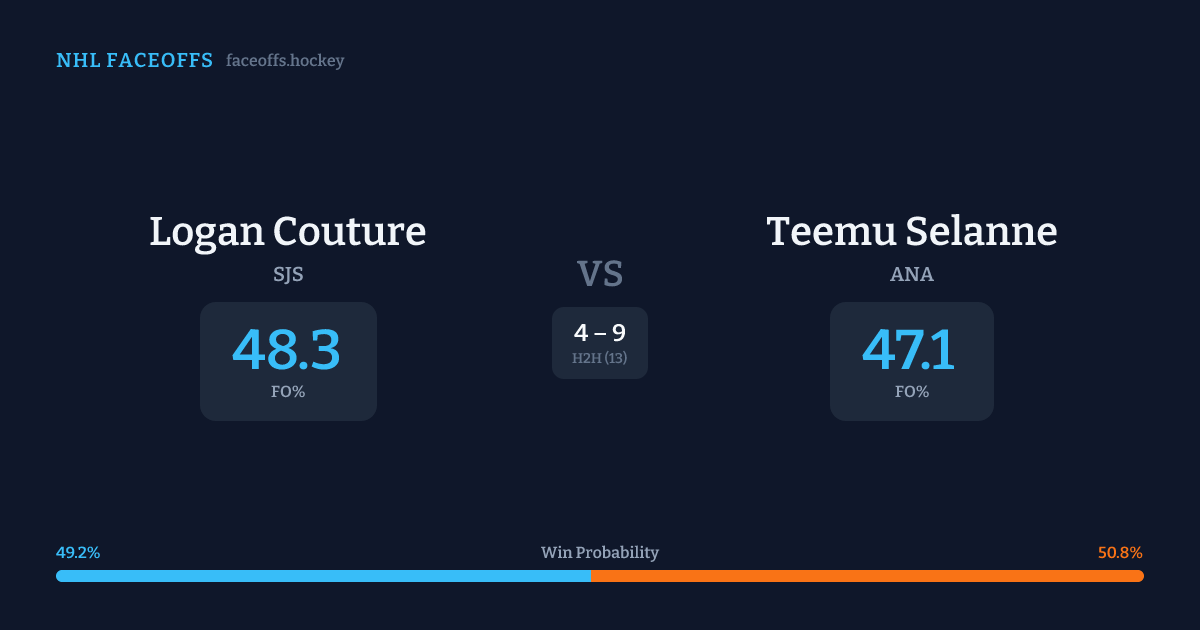 Logan Couture vs Teemu Selanne — Faceoff Head-to-Head