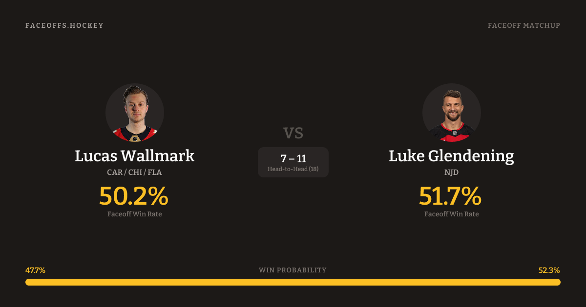 Lucas Wallmark vs Luke Glendening — Faceoff Head-to-Head