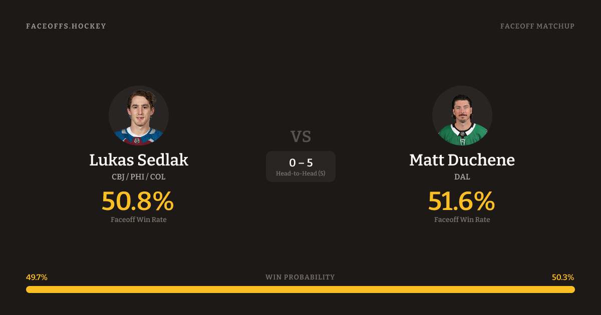 Lukas Sedlak vs Matt Duchene — Faceoff Head-to-Head