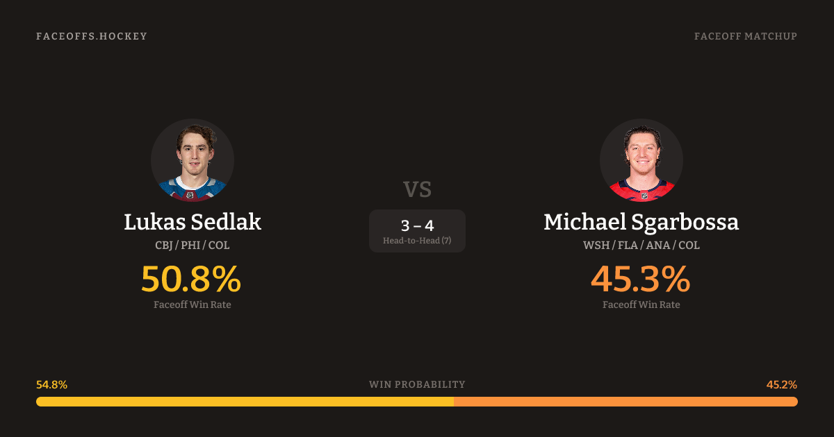 Lukas Sedlak vs Michael Sgarbossa — Faceoff Head-to-Head