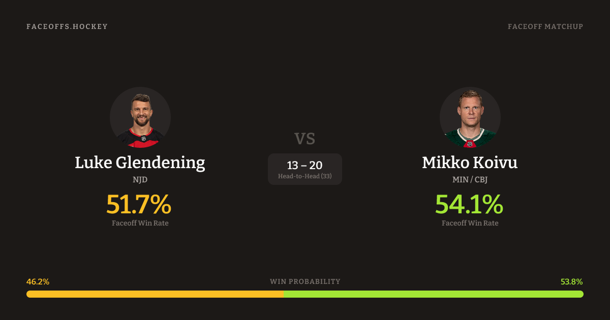 Luke Glendening vs Mikko Koivu — Faceoff Head-to-Head