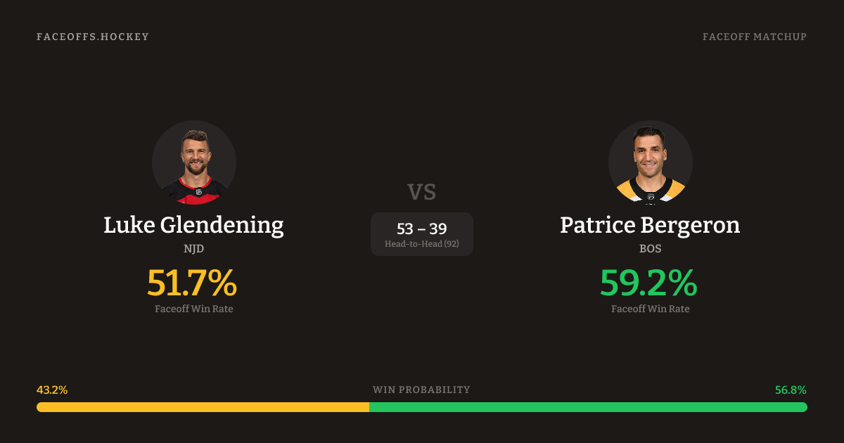 Luke Glendening vs Patrice Bergeron — Faceoff Head-to-Head
