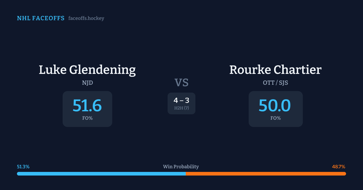 Luke Glendening vs Rourke Chartier — Faceoff Head-to-Head
