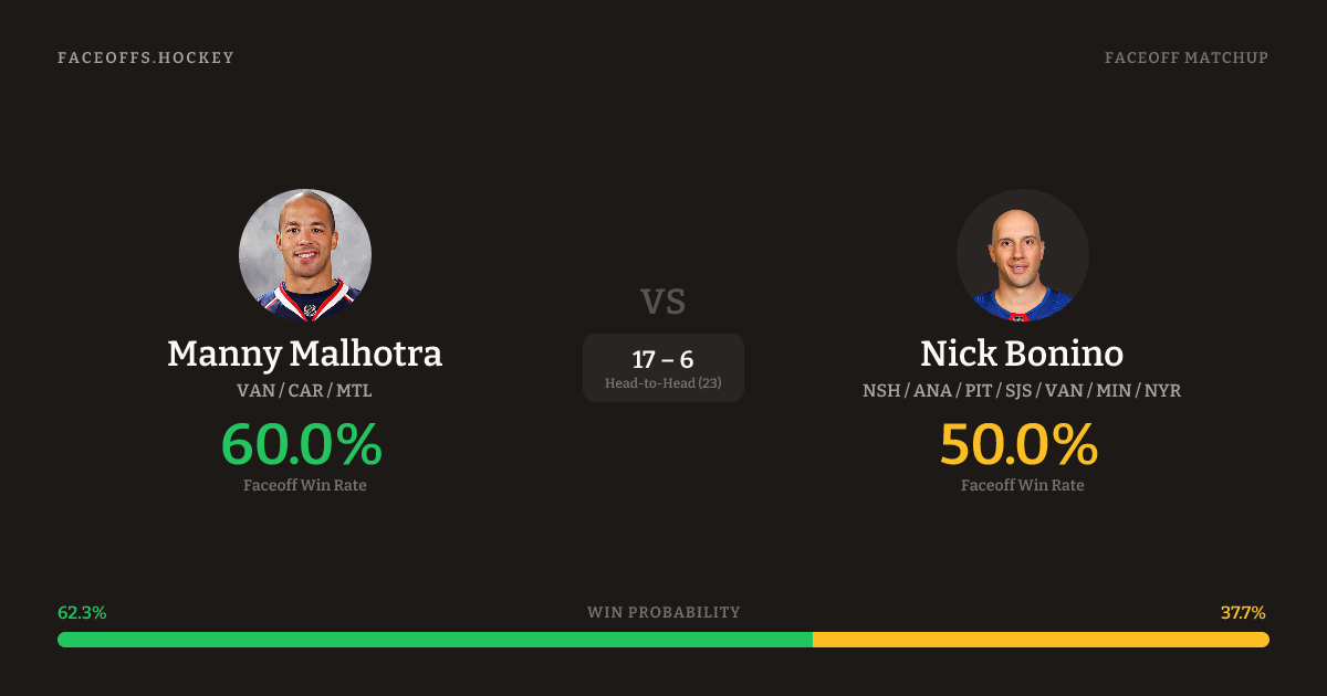Manny Malhotra vs Nick Bonino — Faceoff Head-to-Head