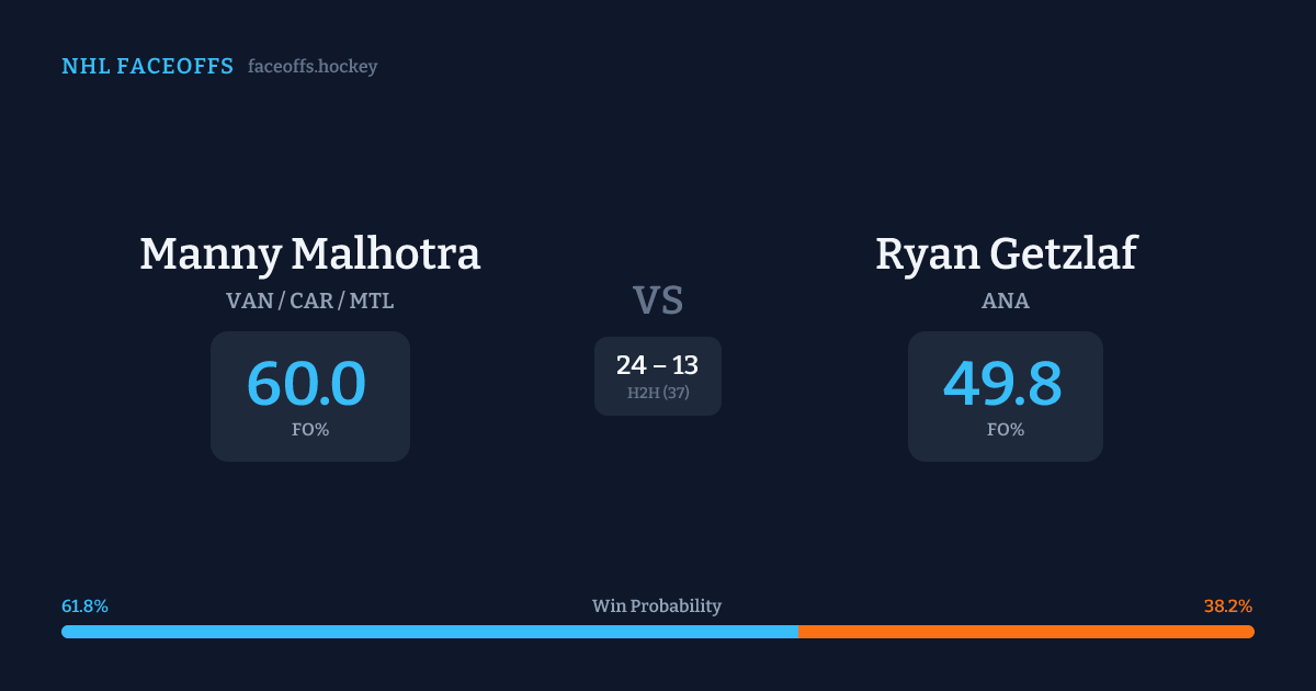Manny Malhotra vs Ryan Getzlaf — Faceoff Head-to-Head