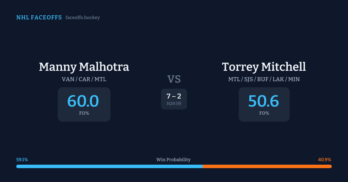 Manny Malhotra vs Torrey Mitchell — Faceoff Head-to-Head