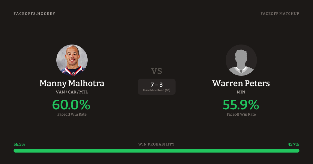 Manny Malhotra vs Warren Peters — Faceoff Head-to-Head