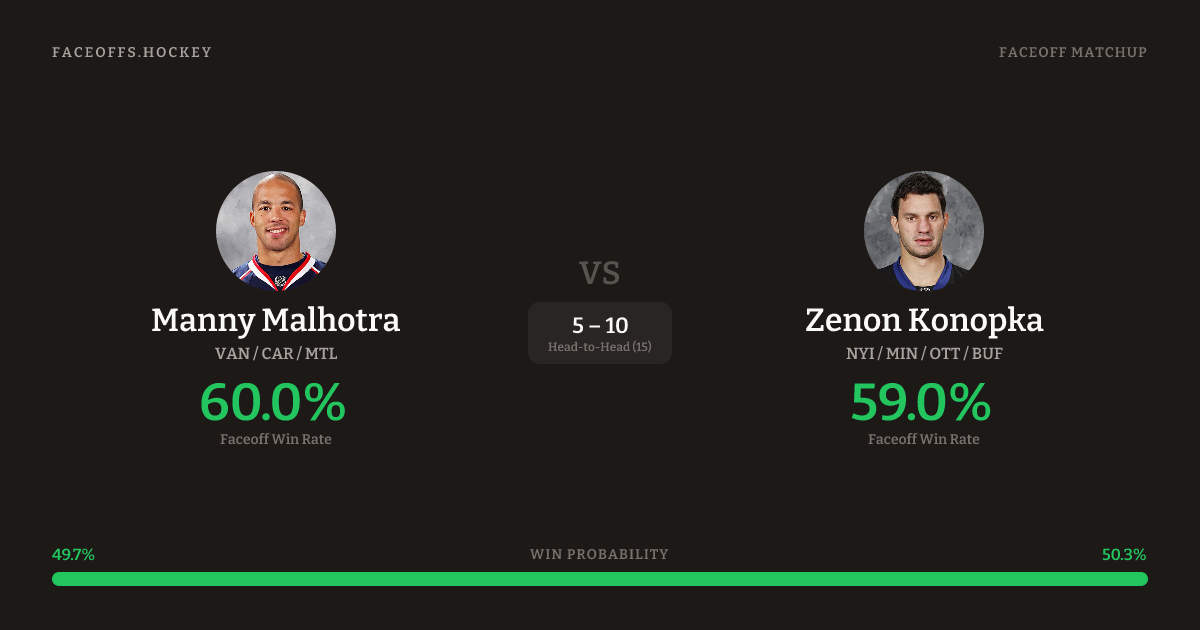 Manny Malhotra vs Zenon Konopka — Faceoff Head-to-Head