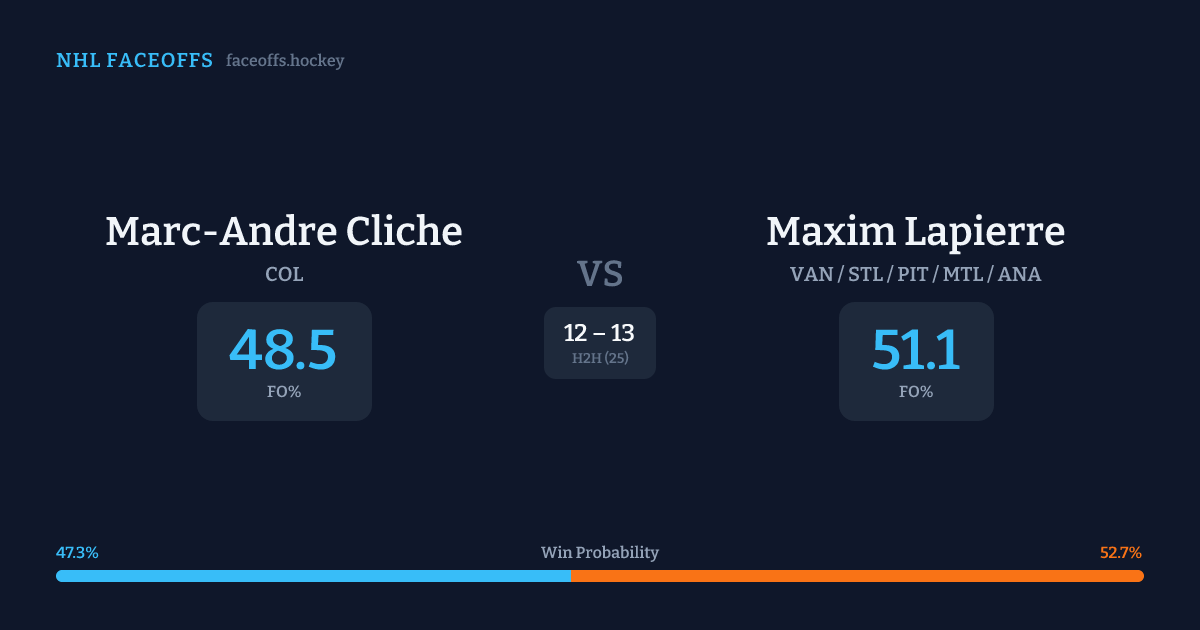 Marc-Andre Cliche vs Maxim Lapierre — Faceoff Head-to-Head