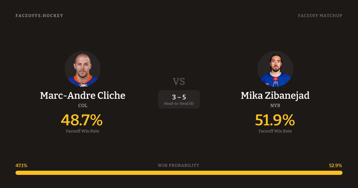 Marc-Andre Cliche vs Mika Zibanejad — Faceoff Head-to-Head