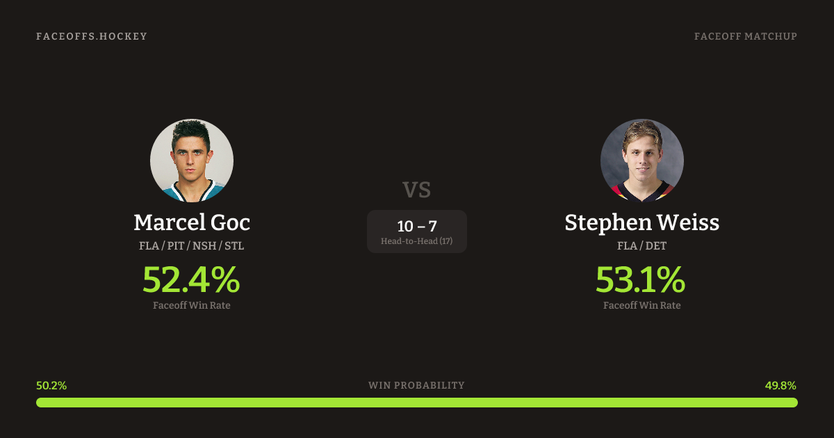 Marcel Goc vs Stephen Weiss — Faceoff Head-to-Head