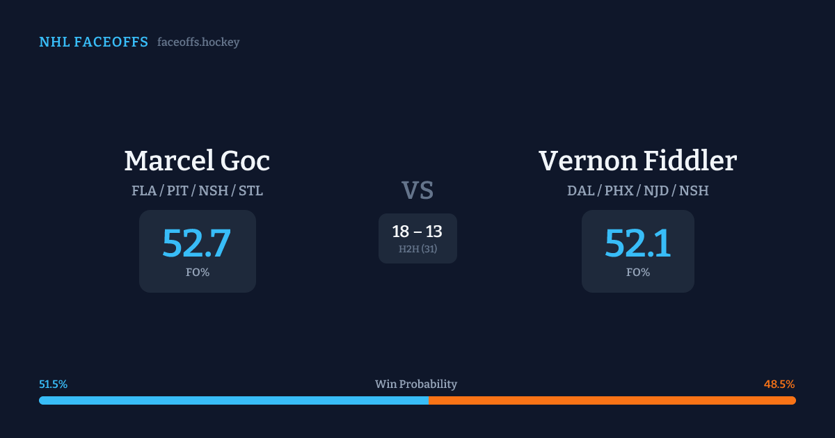 Marcel Goc vs Vernon Fiddler — Faceoff Head-to-Head
