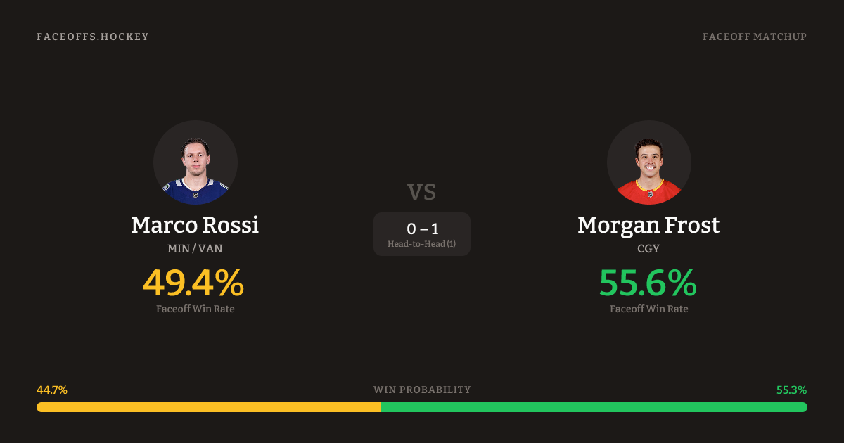 Marco Rossi vs Morgan Frost — Faceoff Head-to-Head