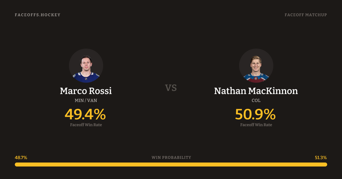 Marco Rossi vs Nathan MacKinnon — Faceoff Head-to-Head