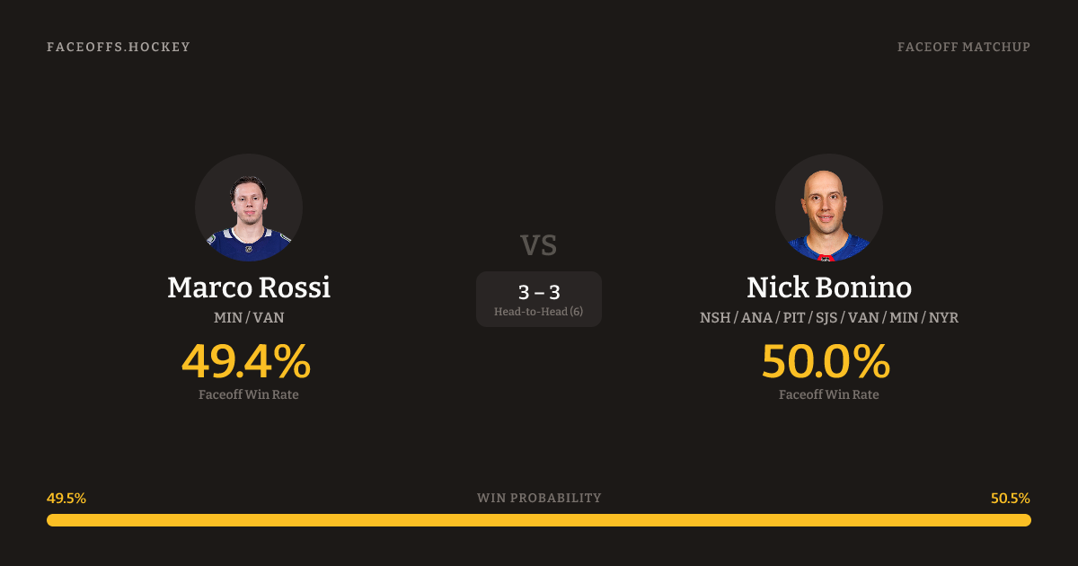 Marco Rossi vs Nick Bonino — Faceoff Head-to-Head