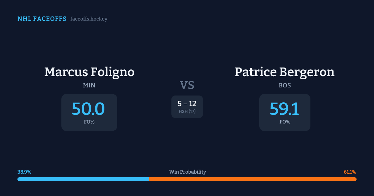 Marcus Foligno vs Patrice Bergeron — Faceoff Head-to-Head