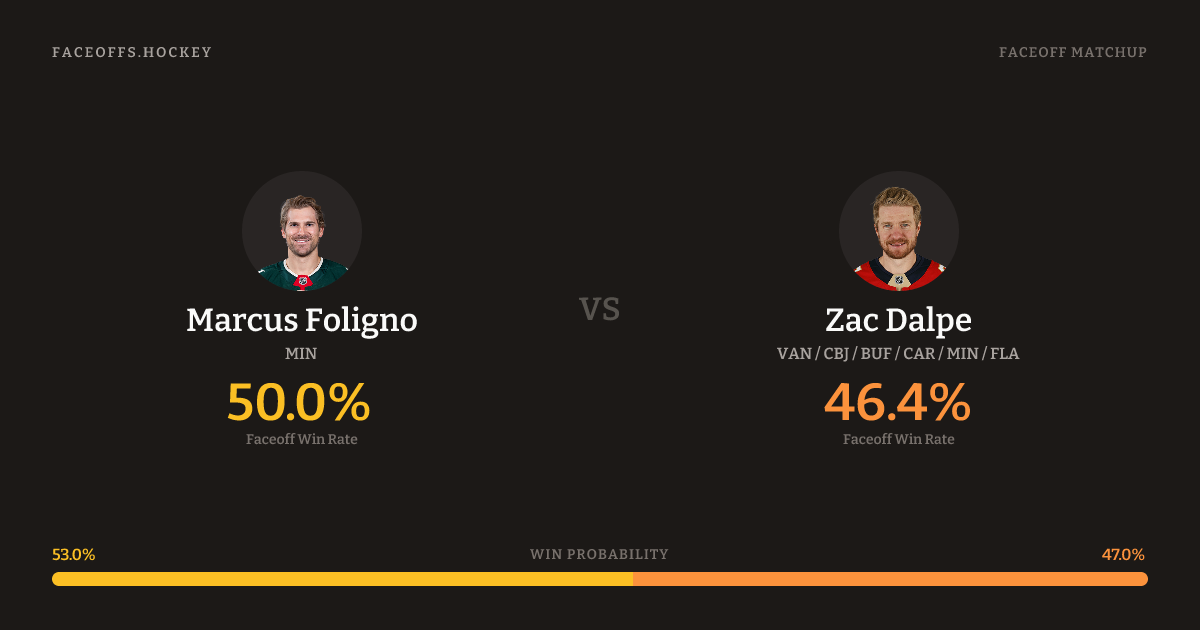 Dalpe shoots right. Foligno is 48.8% vs right-shot opponents (299).