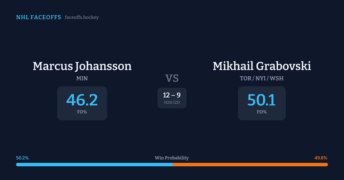 Marcus Johansson vs Mikhail Grabovski — Faceoff Head-to-Head
