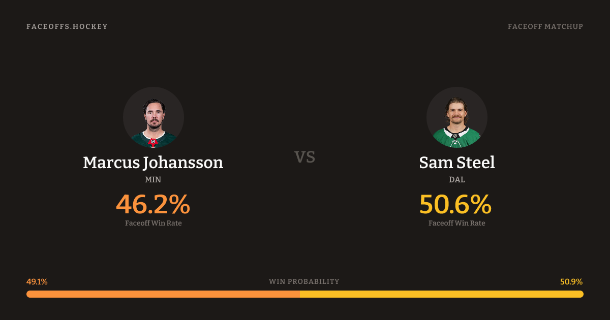 Marcus Johansson vs Sam Steel — Faceoff Head-to-Head