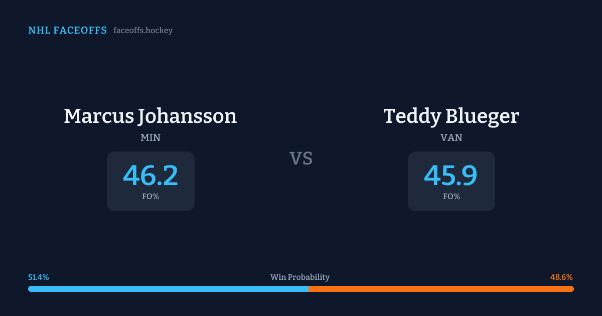 Marcus Johansson vs Teddy Blueger — Faceoff Head-to-Head