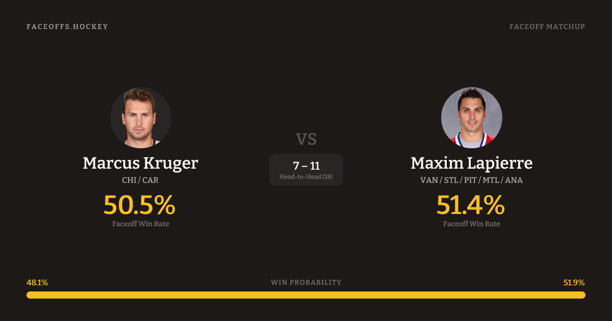 Marcus Kruger vs Maxim Lapierre — Faceoff Head-to-Head