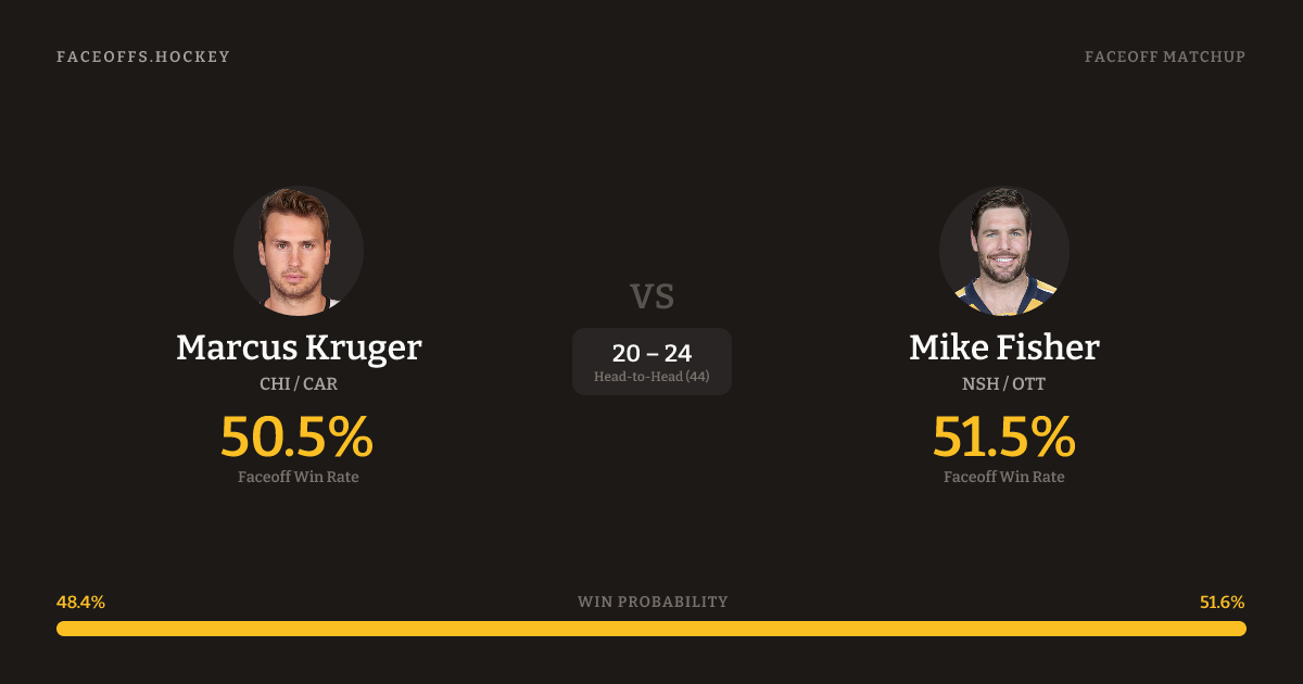 Marcus Kruger vs Mike Fisher — Faceoff Head-to-Head