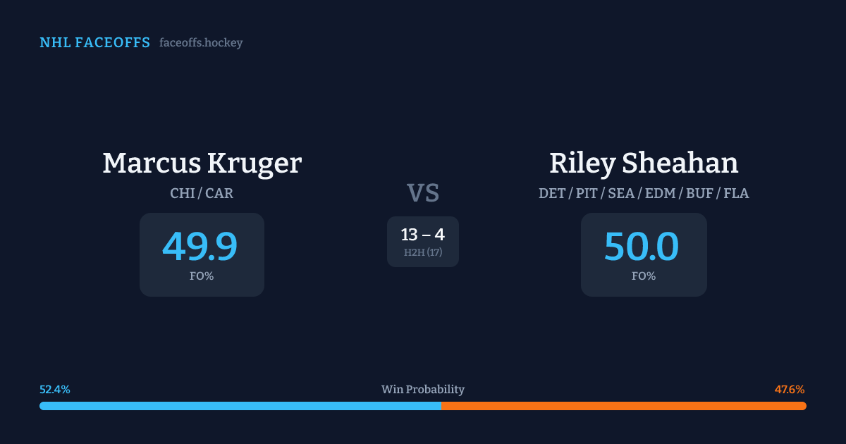 Marcus Kruger vs Riley Sheahan — Faceoff Head-to-Head
