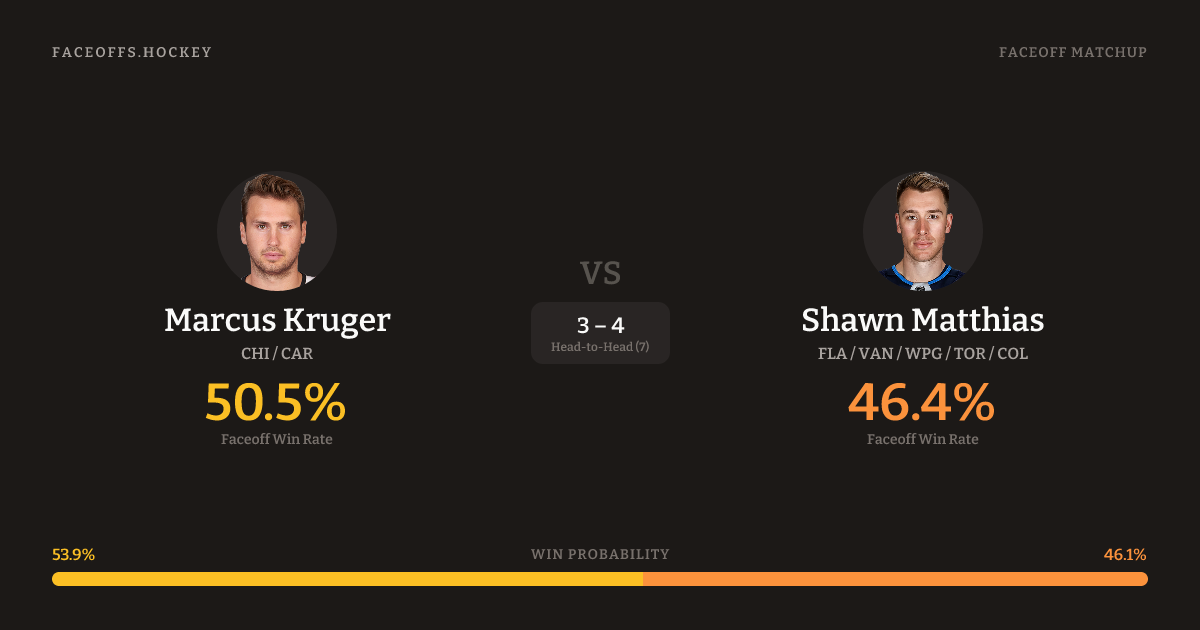 Marcus Kruger vs Shawn Matthias — Faceoff Head-to-Head