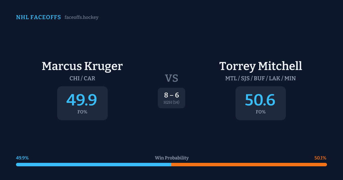 Marcus Kruger vs Torrey Mitchell — Faceoff Head-to-Head