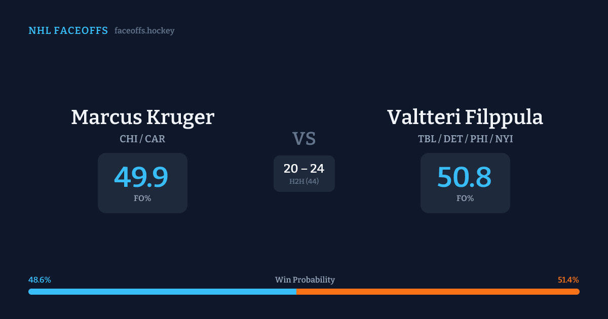 Marcus Kruger vs Valtteri Filppula — Faceoff Head-to-Head
