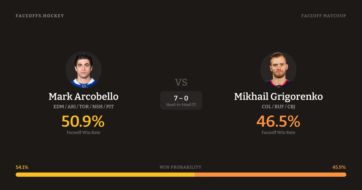 Mark Arcobello vs Mikhail Grigorenko — Faceoff Head-to-Head