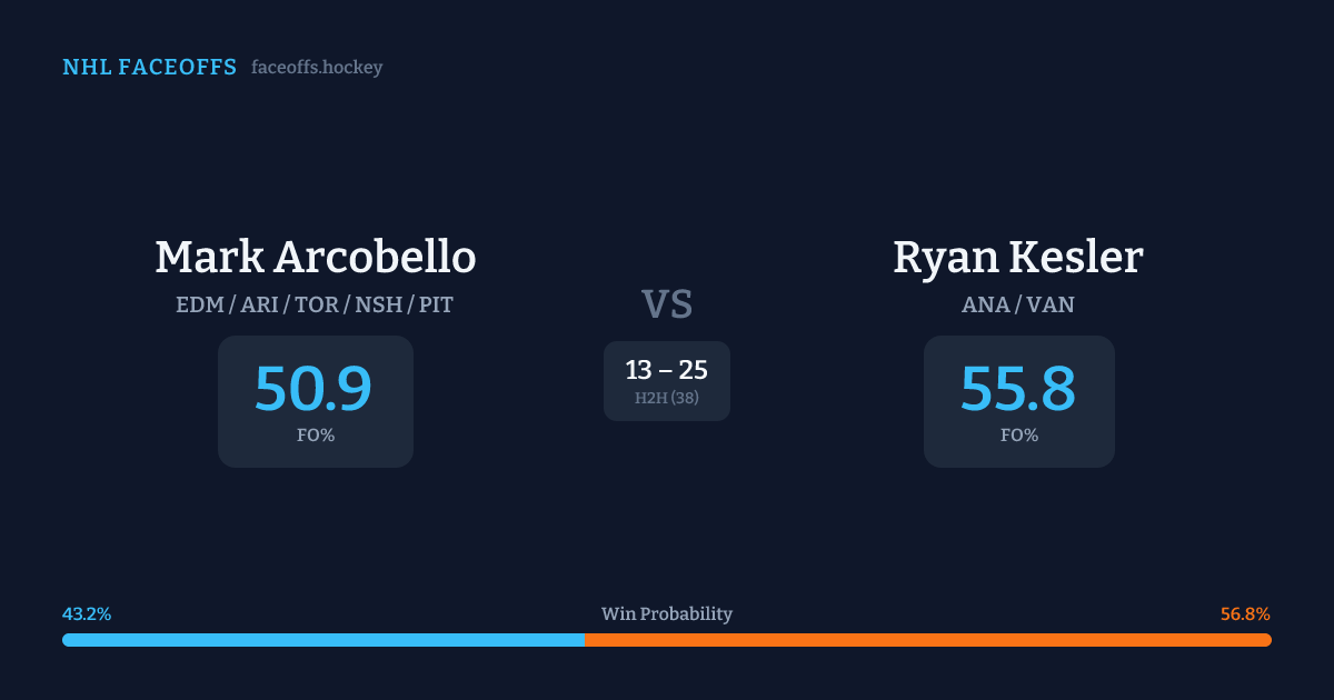 Mark Arcobello vs Ryan Kesler — Faceoff Head-to-Head