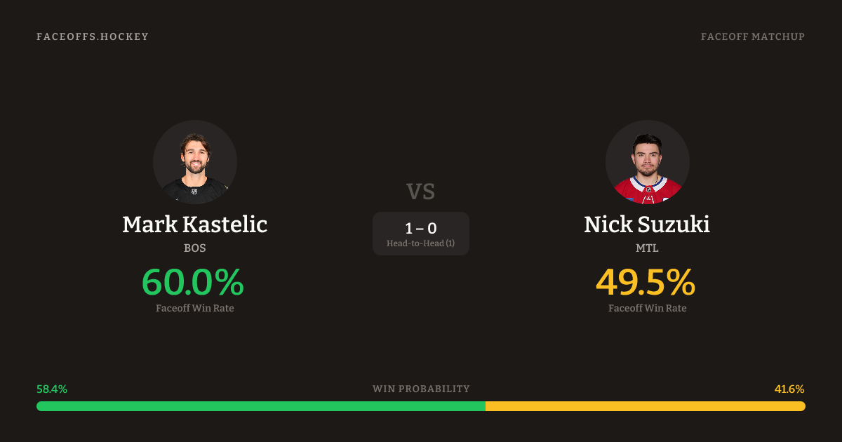 Mark Kastelic vs Nick Suzuki — Faceoff Head-to-Head