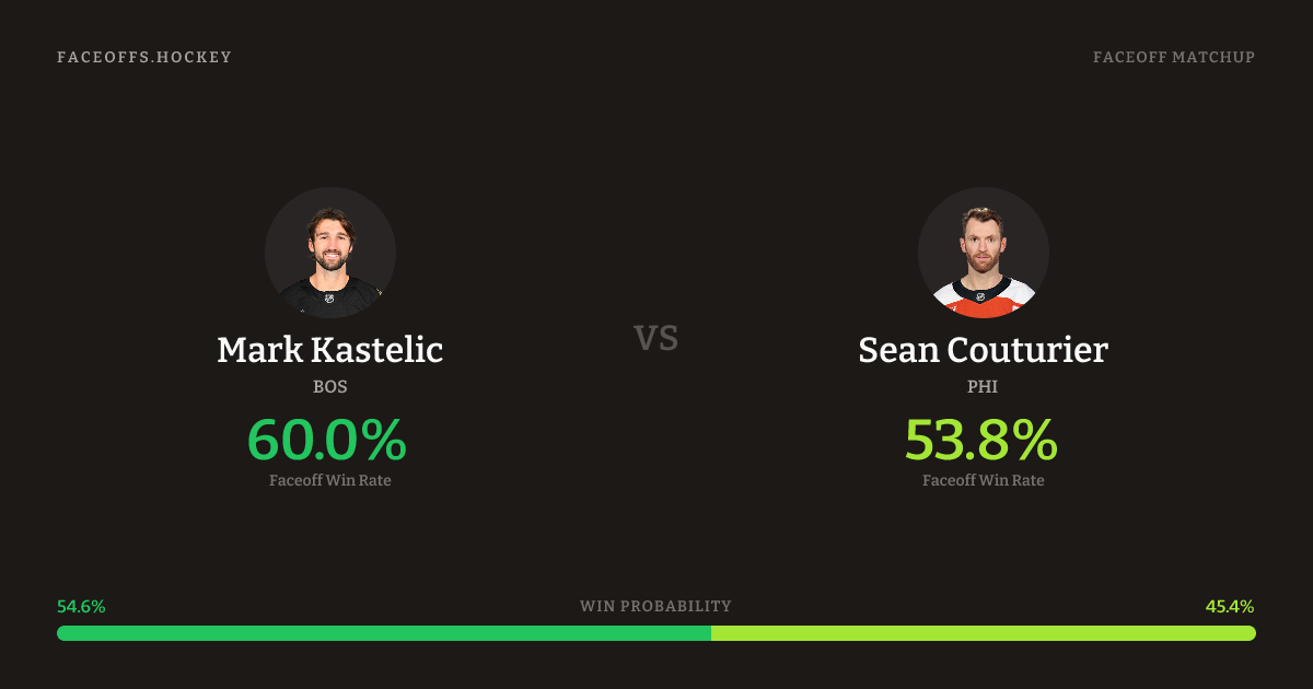 Mark Kastelic vs Sean Couturier — Faceoff Head-to-Head