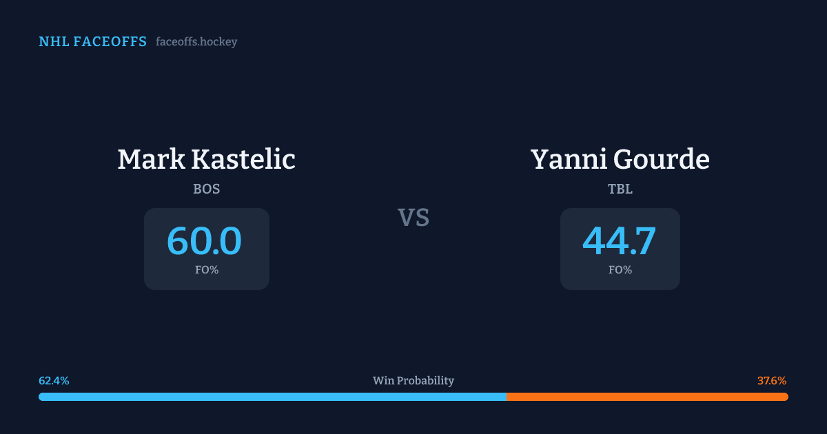Mark Kastelic vs Yanni Gourde — Faceoff Head-to-Head