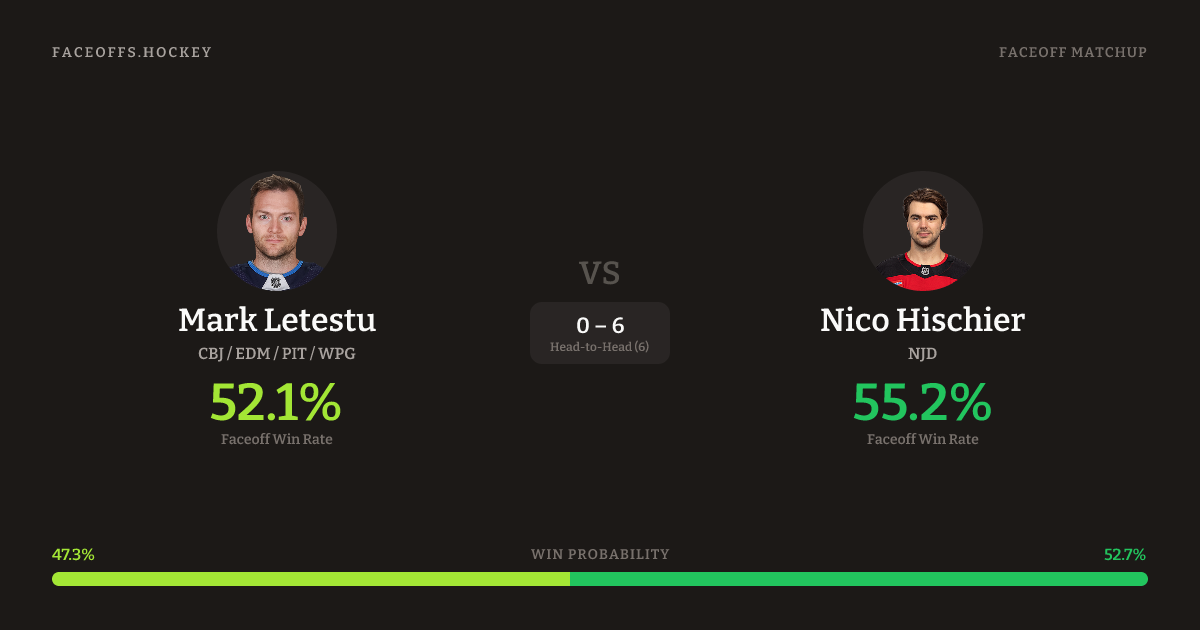 Mark Letestu vs Nico Hischier — Faceoff Head-to-Head
