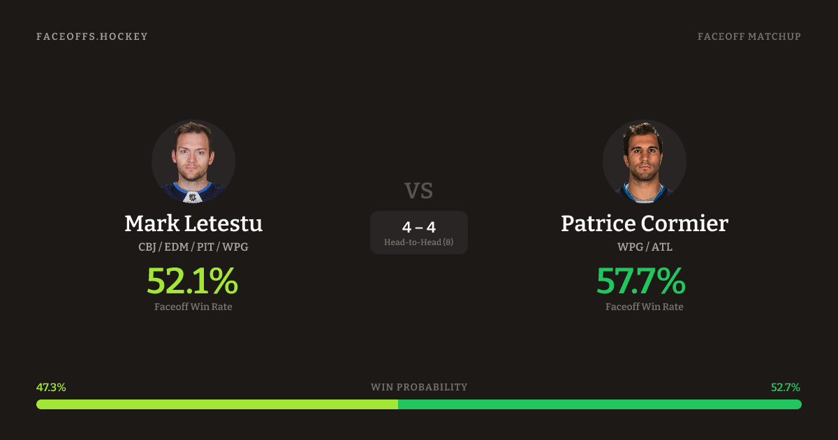 Mark Letestu vs Patrice Cormier — Faceoff Head-to-Head
