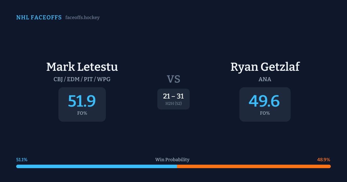Mark Letestu vs Ryan Getzlaf — Faceoff Head-to-Head