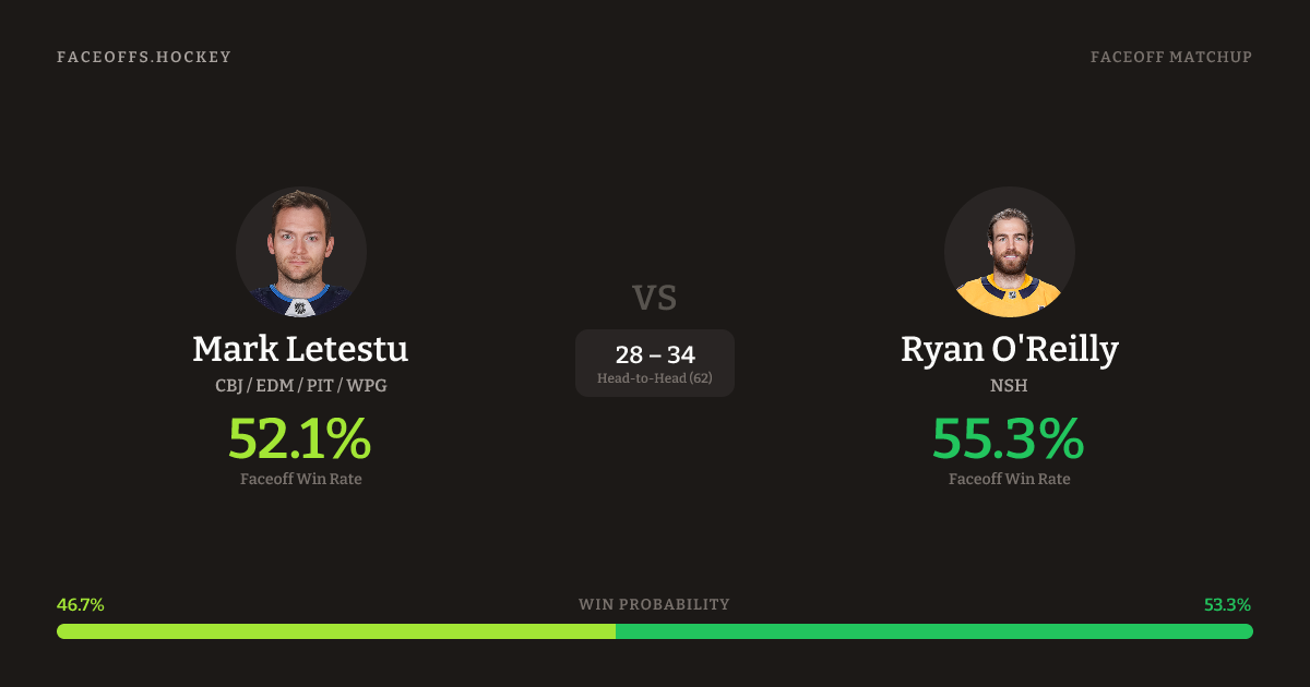 Mark Letestu vs Ryan O'Reilly — Faceoff Head-to-Head