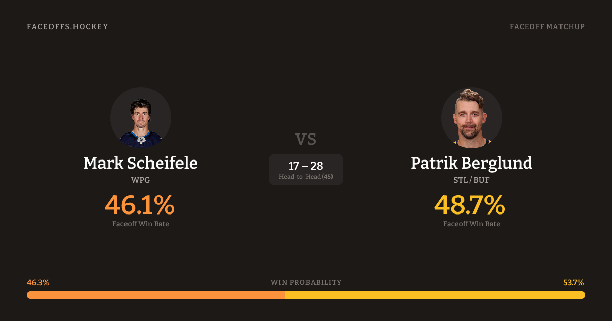 Mark Scheifele vs Patrik Berglund — Faceoff Head-to-Head