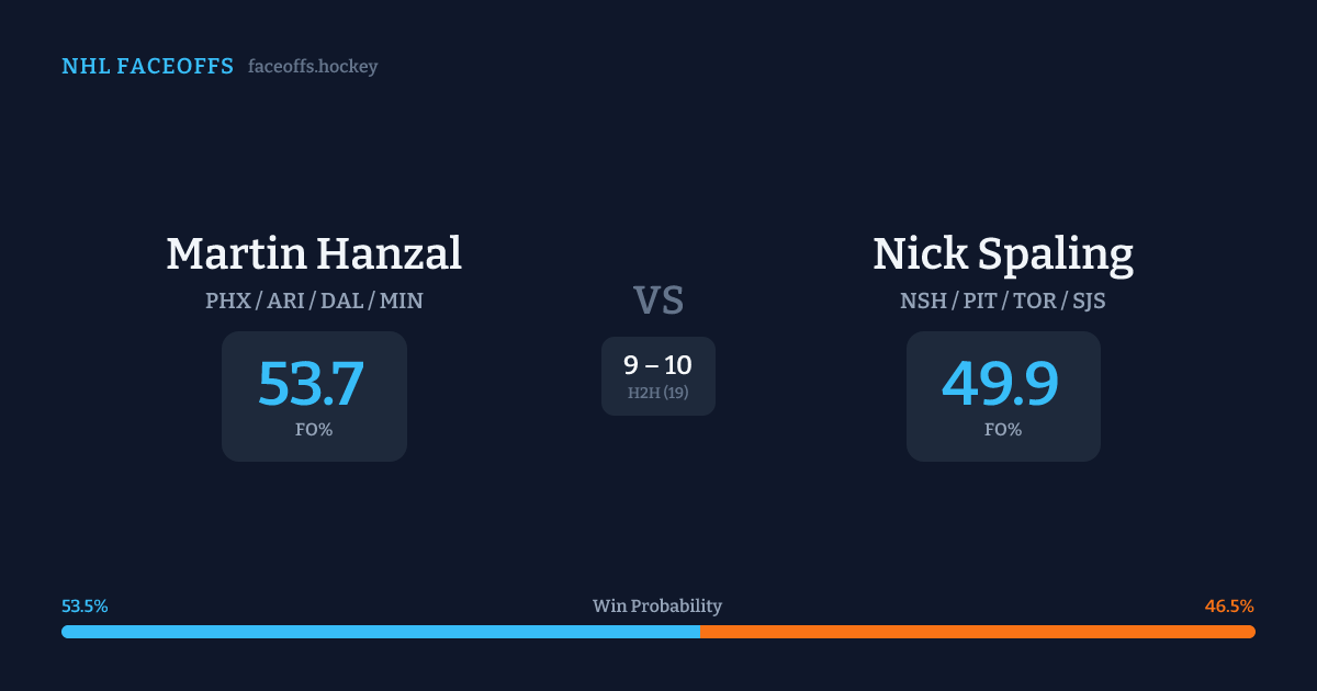Martin Hanzal vs Nick Spaling — Faceoff Head-to-Head
