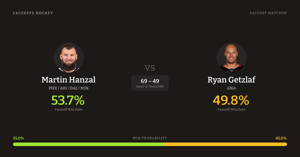 Hanzal 47.2% vs Getzlaf 48.3% (-1.2%)