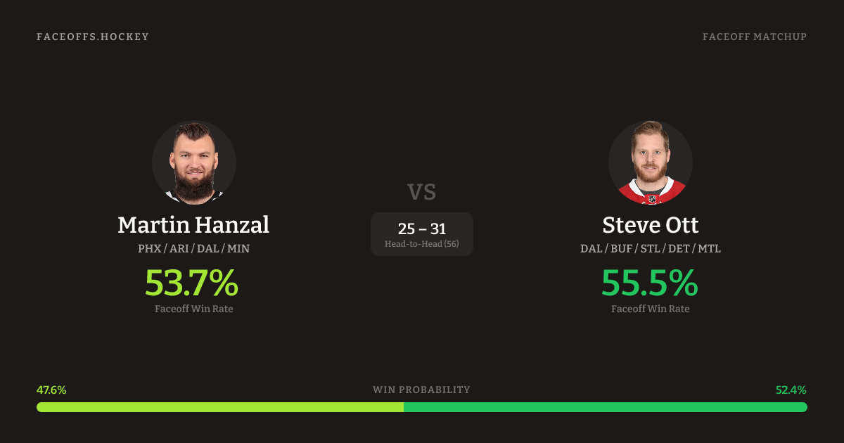 Martin Hanzal vs Steve Ott — Faceoff Head-to-Head