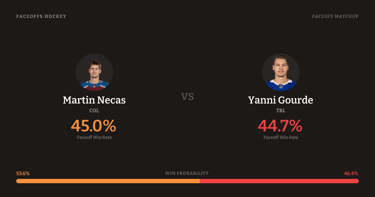 Martin Necas vs Yanni Gourde — Faceoff Head-to-Head